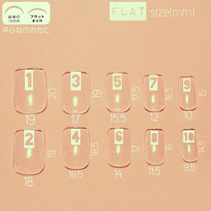 返品・交換不可なオーダー商品のため、爪が平らな方やネイルチップを初めて買う方はサイズ確認をしていただく事を強くオススメします。